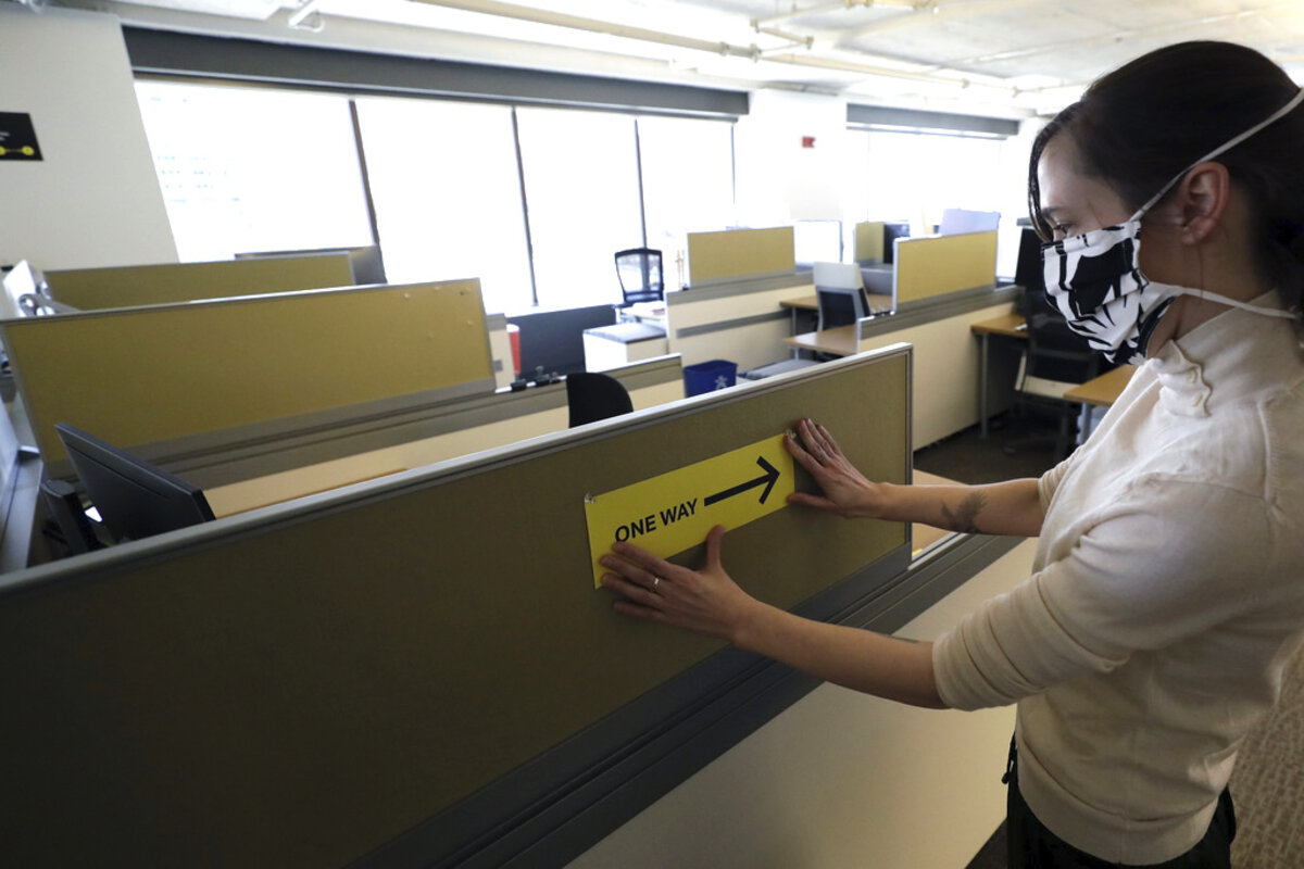 All sorts of new ways are being imagined to make workplaces safer, from limiting the number of people in elevators to one-way hallways, touchless door openers, and a return to high-walled cubicles.