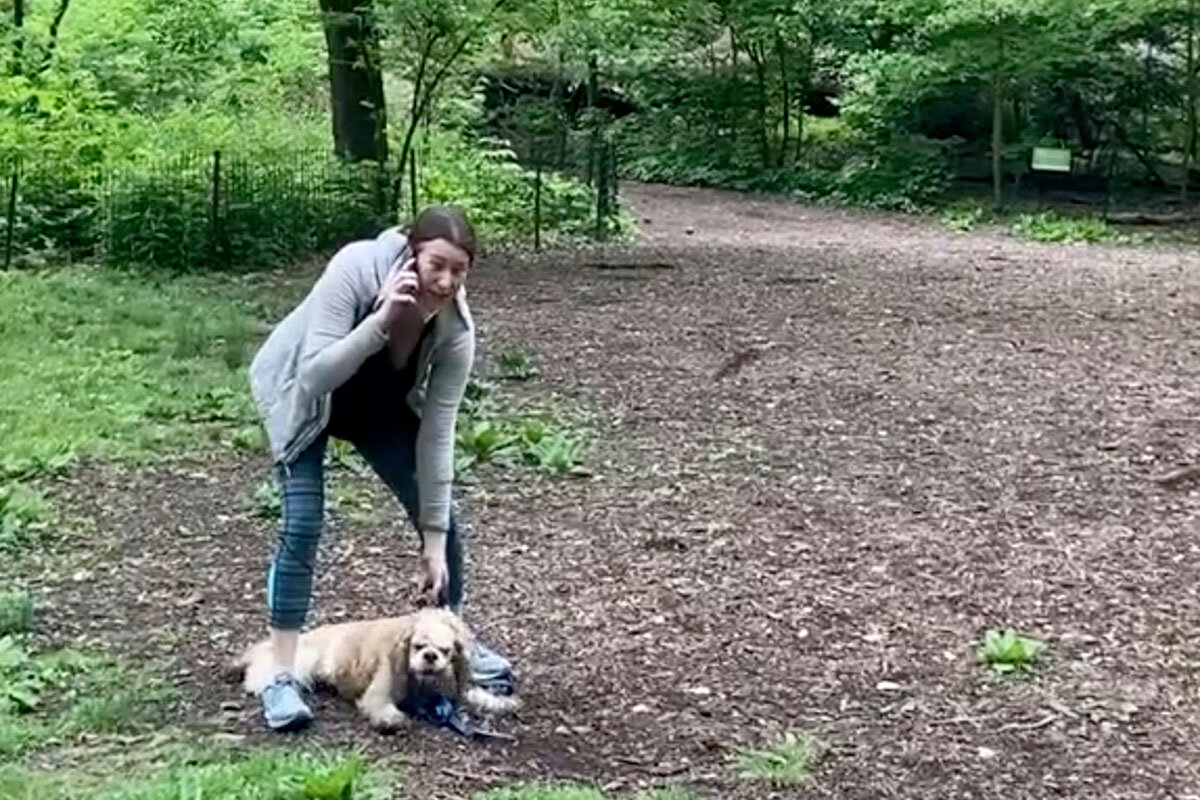 Amy Cooper, who is white, was walking her dog off-leash Monday in an area of New York鈥檚 Central Park that requires one. 海角大神 Cooper (no relation), a black man, was bird-watching and asked her to leash her dog.聽