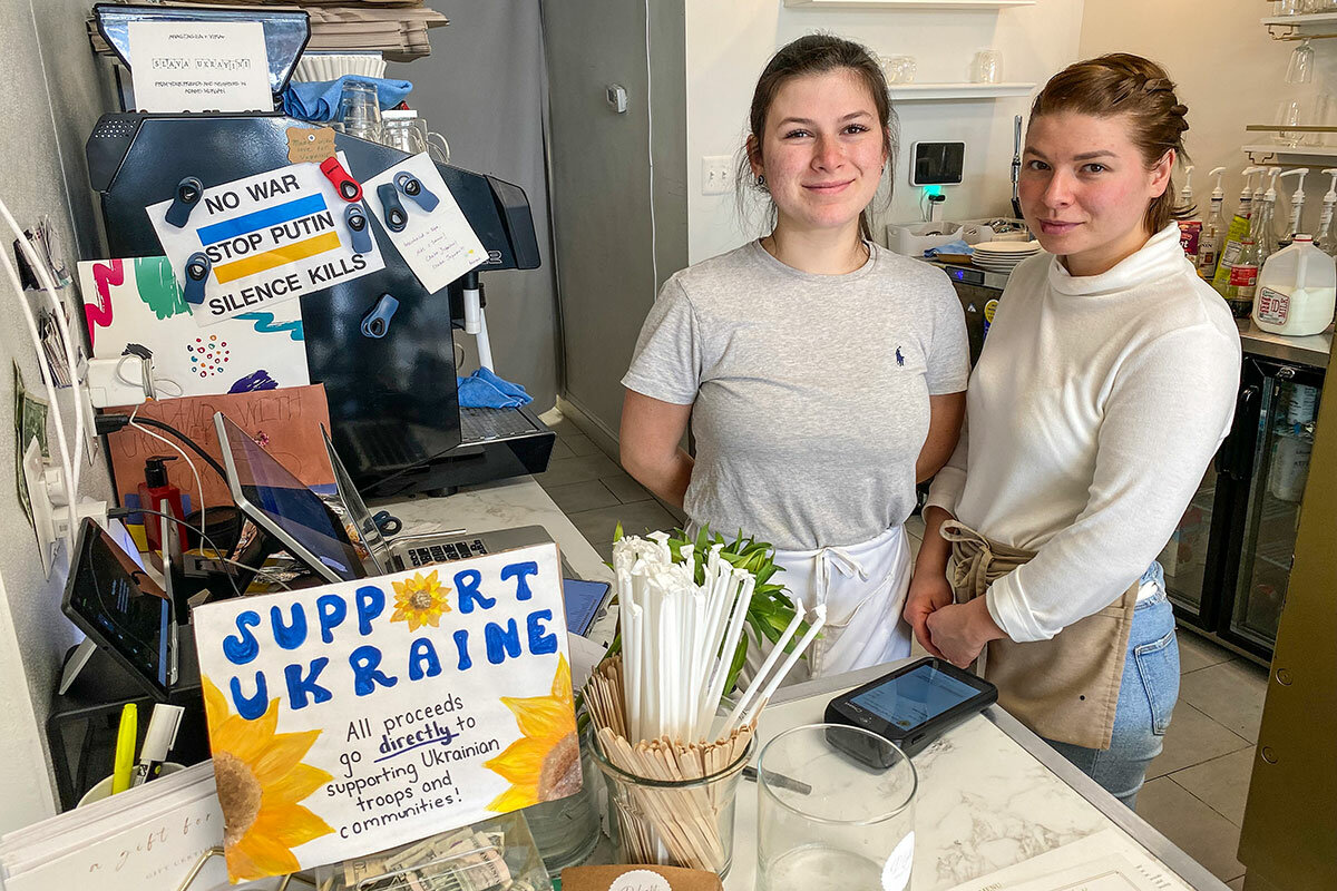 Barely a week later, Russia invaded their homeland, and again, the sisters swung into action. They baked Ukrainian flag cookies 鈥 customers lined up down the block to buy them 鈥 and hosted trivia and comedy nights to raise funds. A plexiglass box sits on the cafe鈥檚 sales counter, stuffed with cash. 鈥淪upport Ukraine,鈥 says the blue-and-yellow sign, painted bright with sunflowers. 鈥淎ll proceeds go聽directly聽to support Ukrainian troops and communities.鈥