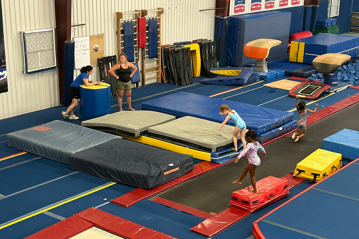 From an open mezzanine above, I watched my daughter gaze excitedly at her teacher 30 feet away from her, standing behind a trampoline and a tumbling mat. Other little girls, dressed in similar colorful leotards, ran toward their instructor, then bounced and flipped.聽