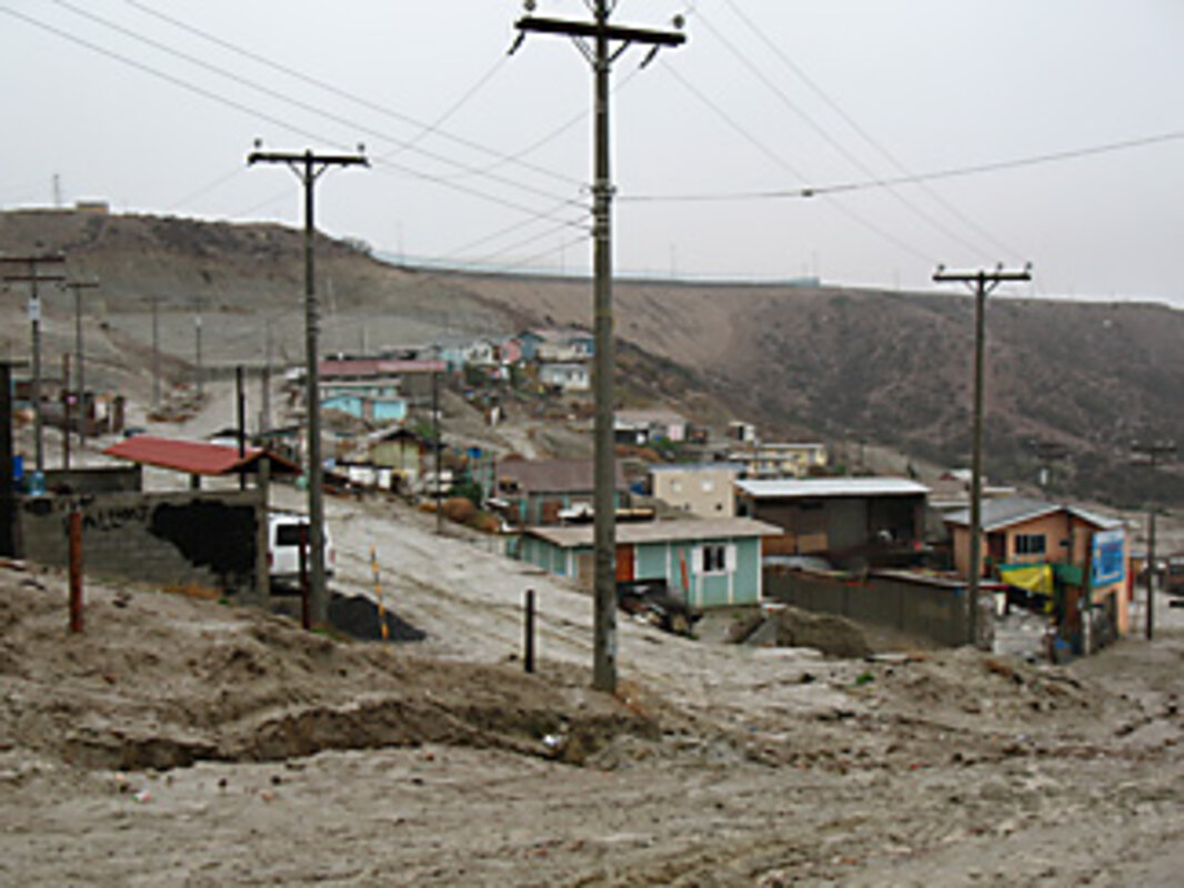 Typically, electricity arrives quickly, followed by water, though the process can take seven to eight years, Ganster says. Professor Romo and a group of urban-studies students are focusing their efforts on a slum known as San Bernardo that didn't exist four years ago. Now, hundreds of ramshackle homes climb the hillsides of a Tijuana canyon.