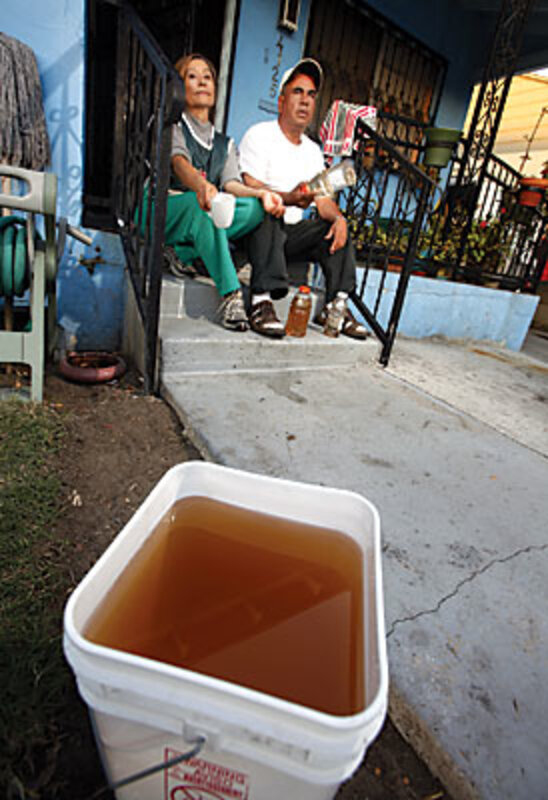 When residents of this city in southeast Los Angeles County turn on their taps, brown, yellow, red, or even brackish black water often pours out. State regulators admit that it can stain clothes, smell or taste awful, and, on occasion, contain manganese, lead, trichloroethylene, and other contaminants. But they say it is safe. Local water district officials insist they are doing their best in a poor city that cannot afford millions to replace crumbling pipes.