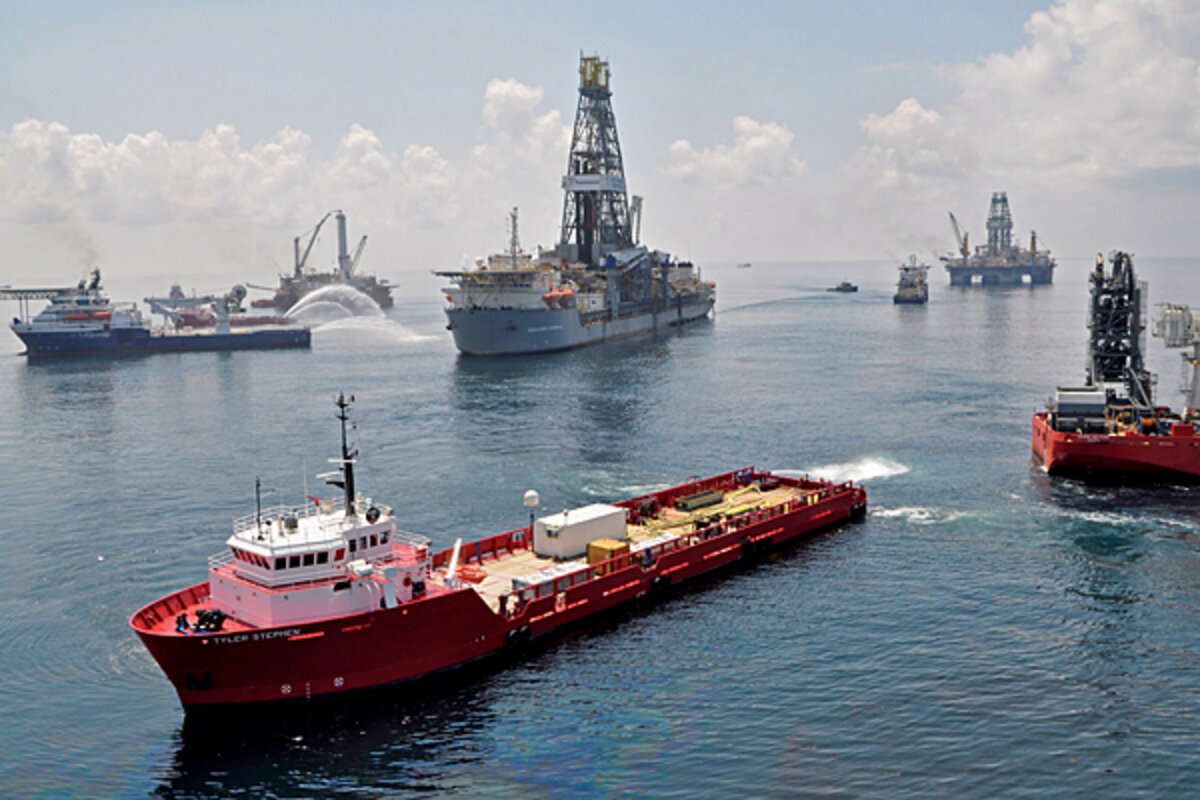 For that price, says Mike Smith, president of Bassoe Offshore (USA), a brokerage firm, you get a state-of-the-art rig that displaces perhaps 100,000 tons of seawater and sprawls over an area larger than a football field. Yet with all their sophistication and size, even such behemoths may be only just barely big enough to support the miles of pipe, thousands of tons of drilling "mud," and massive pumps needed to control a deep well's explosive power, experts say. Today's rigs already cost up to a million dollars a day to operate 鈥 an enormous financial risk if there's a dry hole or a blowout.