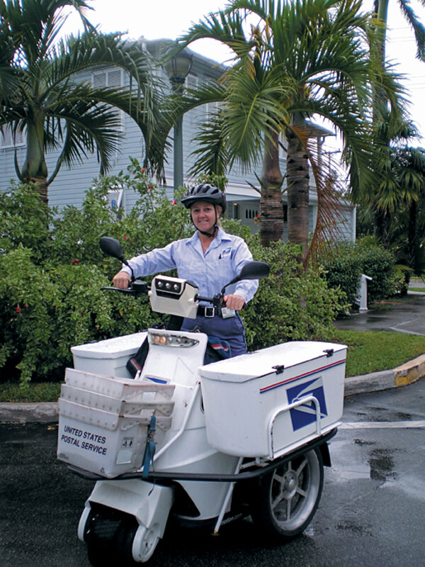 The carts "don't leave a carbon footprint, and it's much more efficient than walking or using a conventional vehicle," says Jane Evans, Key West's postmaster. The T-3s cost 25 cents a day to run, while the delivery vans that run on gasoline cost anywhere from $10 to $35 a day, she notes.