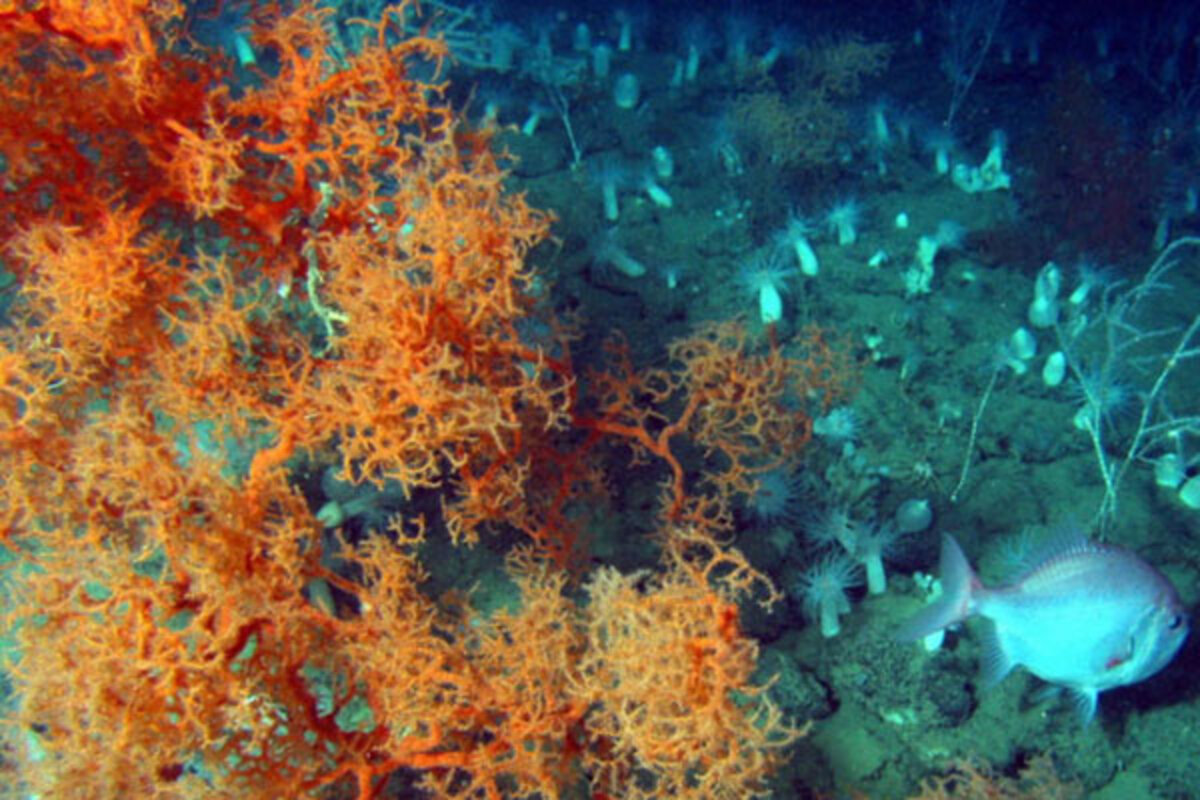 Most of the Gulf's bottom is muddy and the coral colonies that pop up every once in a while are vital oases for marine life in the chilly ocean depths.