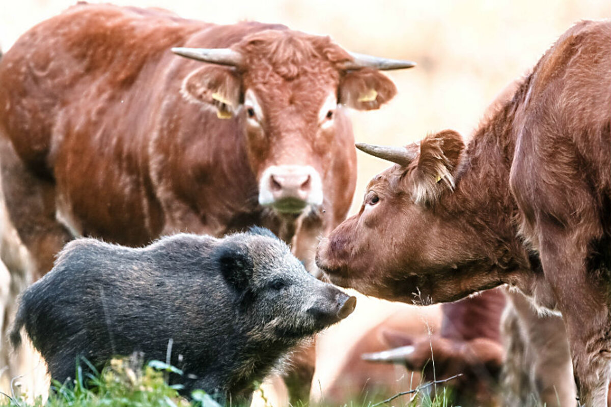 A wild pig in Germany has decided to give up its "boaring" life 鈥 leaving the forest to live with a small herd of cattle.