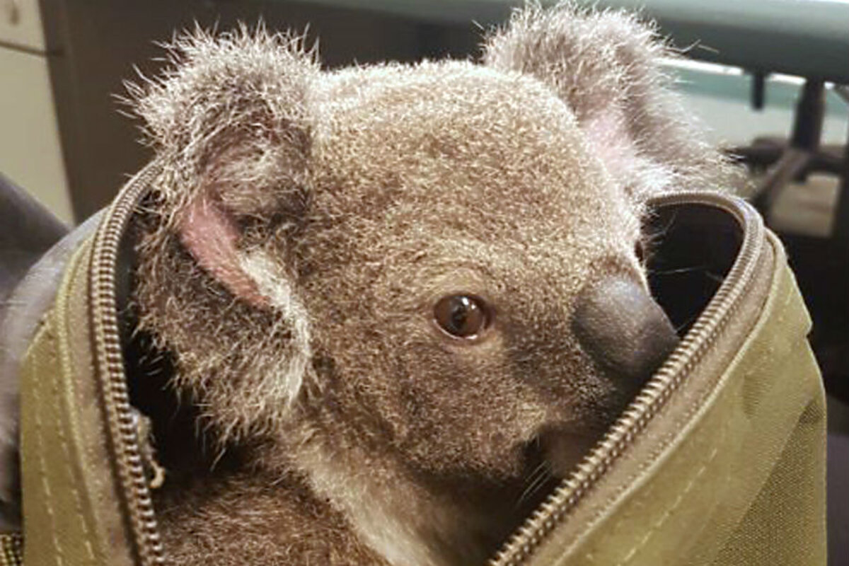 Queensland Police in Brisbane said that when they asked the 50-year-old woman if she had anything to declare Sunday night, she handed over a zipped canvas bag that she said contained a baby koala.