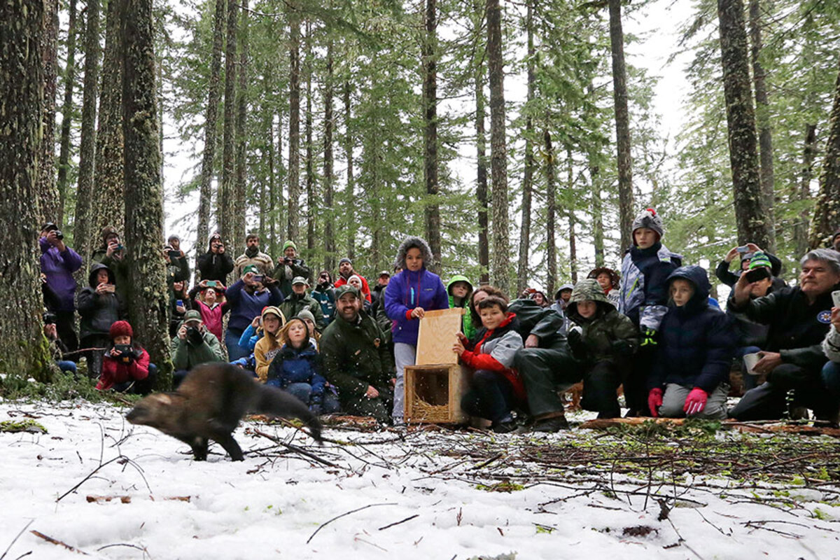 A large crowd gathered Friday to herald the return of the dark-brown member of the weasel family with its lush fur and bushy tail. They cheered, clapped, and hooted, and First Nations and American Indian tribal members sang and drummed, as each crate door was lifted and a聽fisher聽streaked out of sight across the snowy ground.