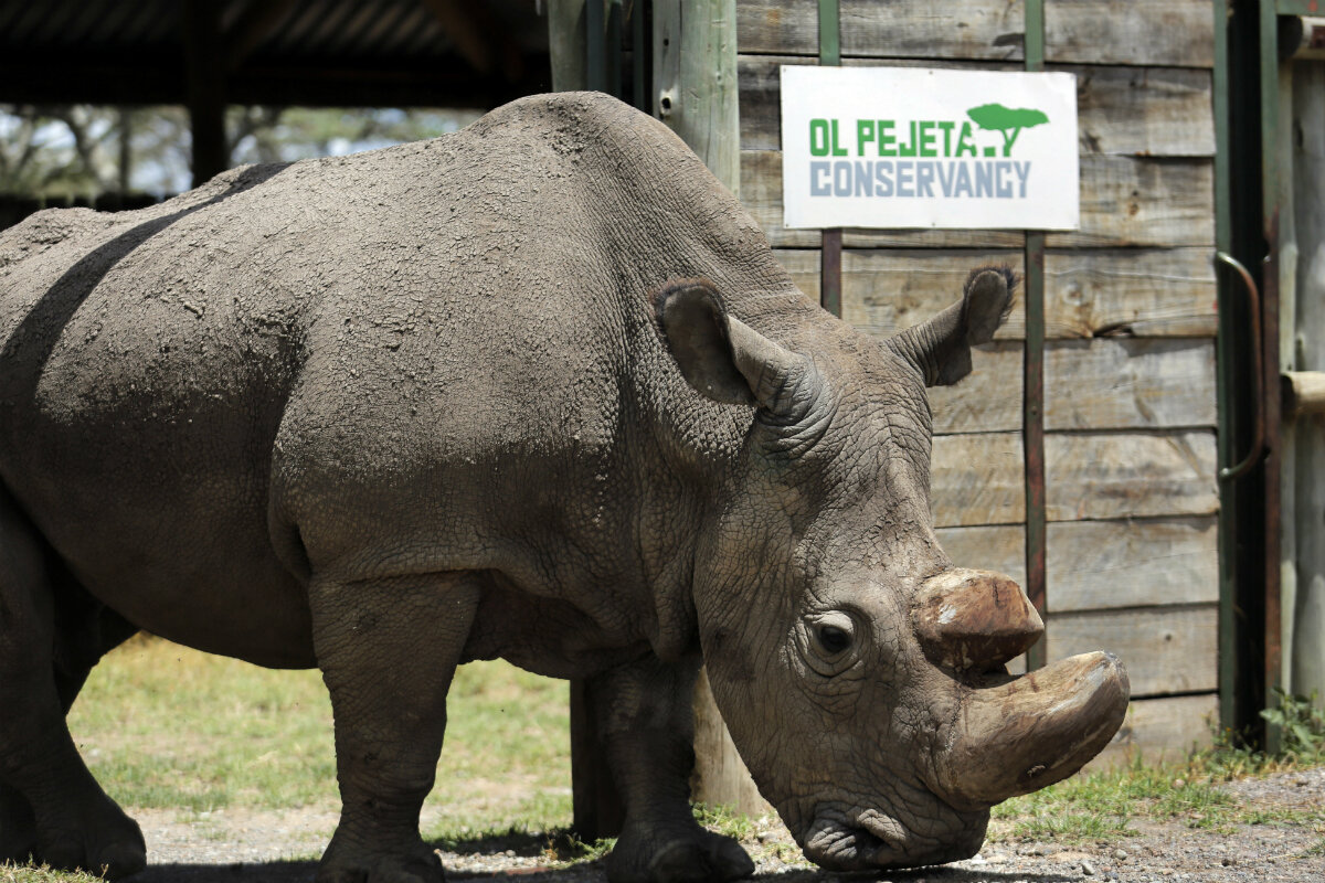 The rhino "significantly contributed to survival of his species as he sired two females," the conservancy said. "Additionally, his genetic material was collected yesterday and provides a hope for future attempts at reproduction of northern white rhinos through advanced cellular technologies."