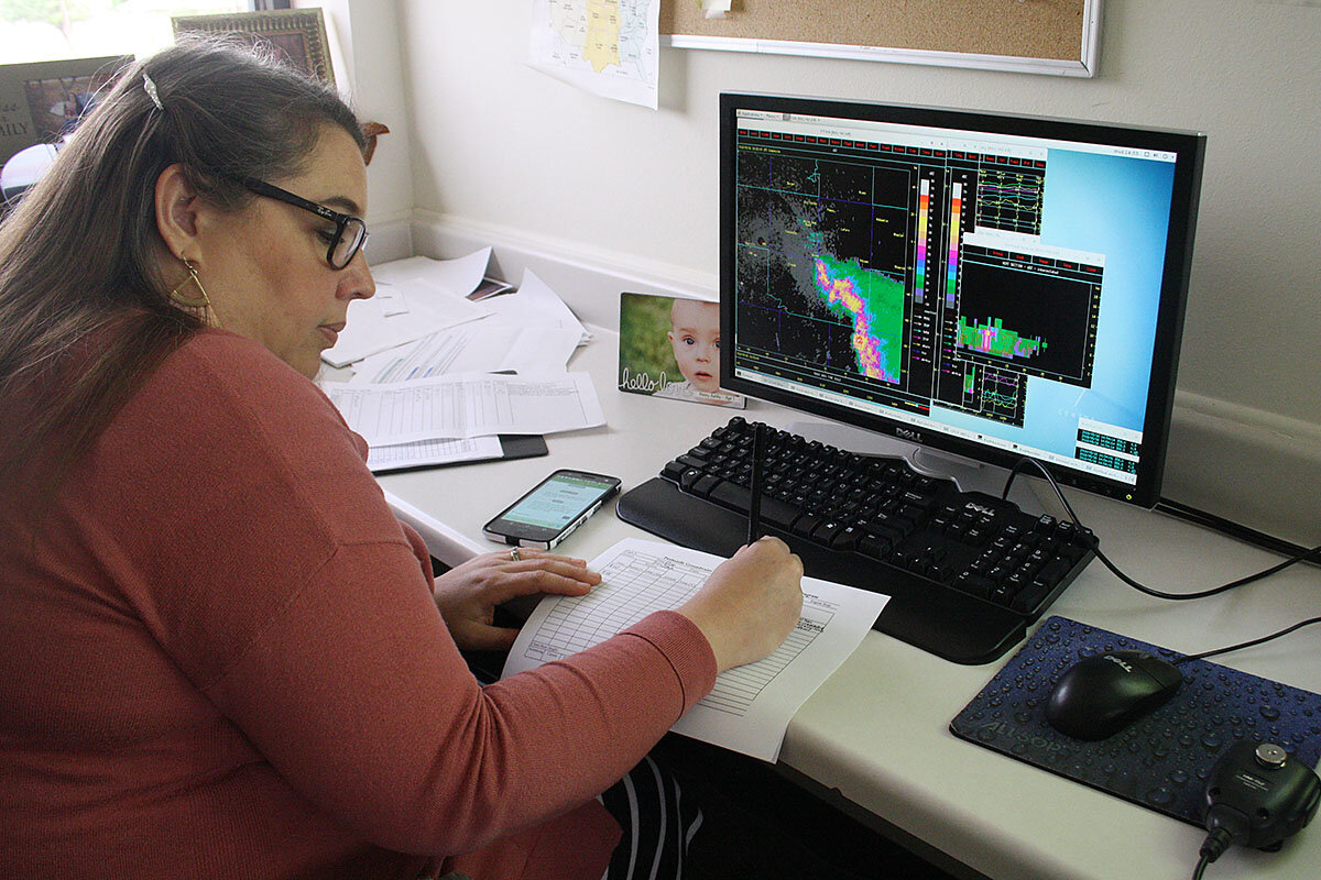 One morning in mid-May she is studying live radar images on her computer of a storm system over the district. A transponder radio squawks as she communicates with a pilot who鈥檚 just taken off. The system had been there overnight and is now petering out 鈥 not the best time to try seeding.