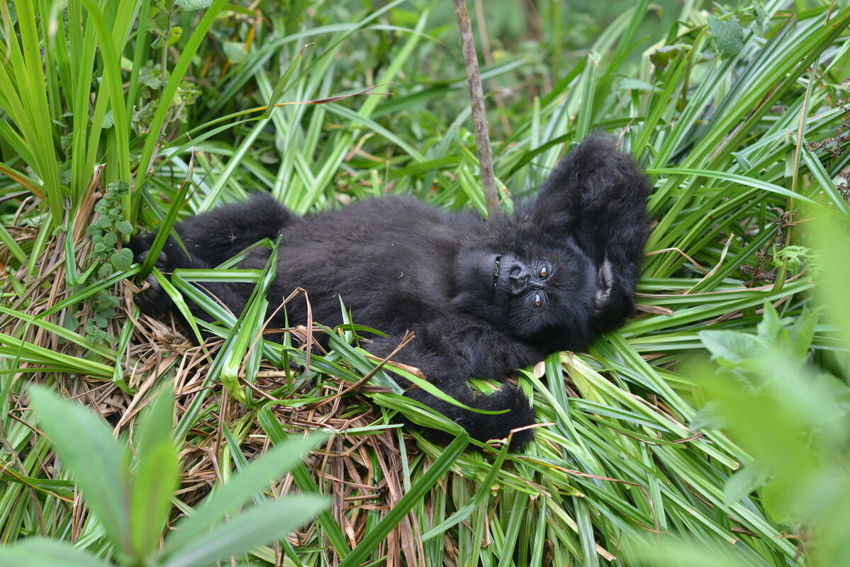 Mountain gorillas live in lush and misty forests along a range of dormant volcanoes in east Africa. Their habitat falls inside national parks spanning parts of Rwanda, Uganda, and the Democratic Republic of the Congo.