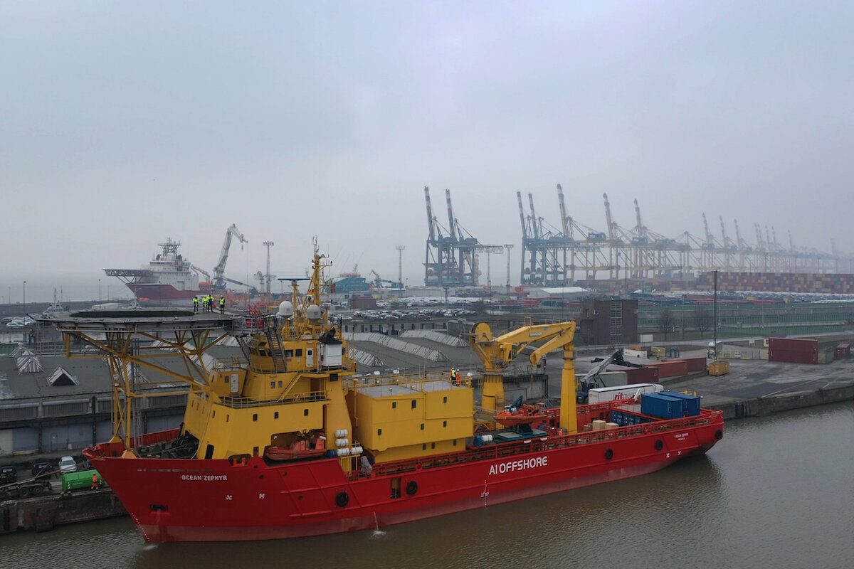 The Ocean Zephyr is preparing to leave Bremerhaven, Germany, on the first leg of trip. Researchers will spend seven weeks surveying underwater life, map the sea floor, and drop sensors to depths of up to 6,560 feet in the seas around the Seychelles.