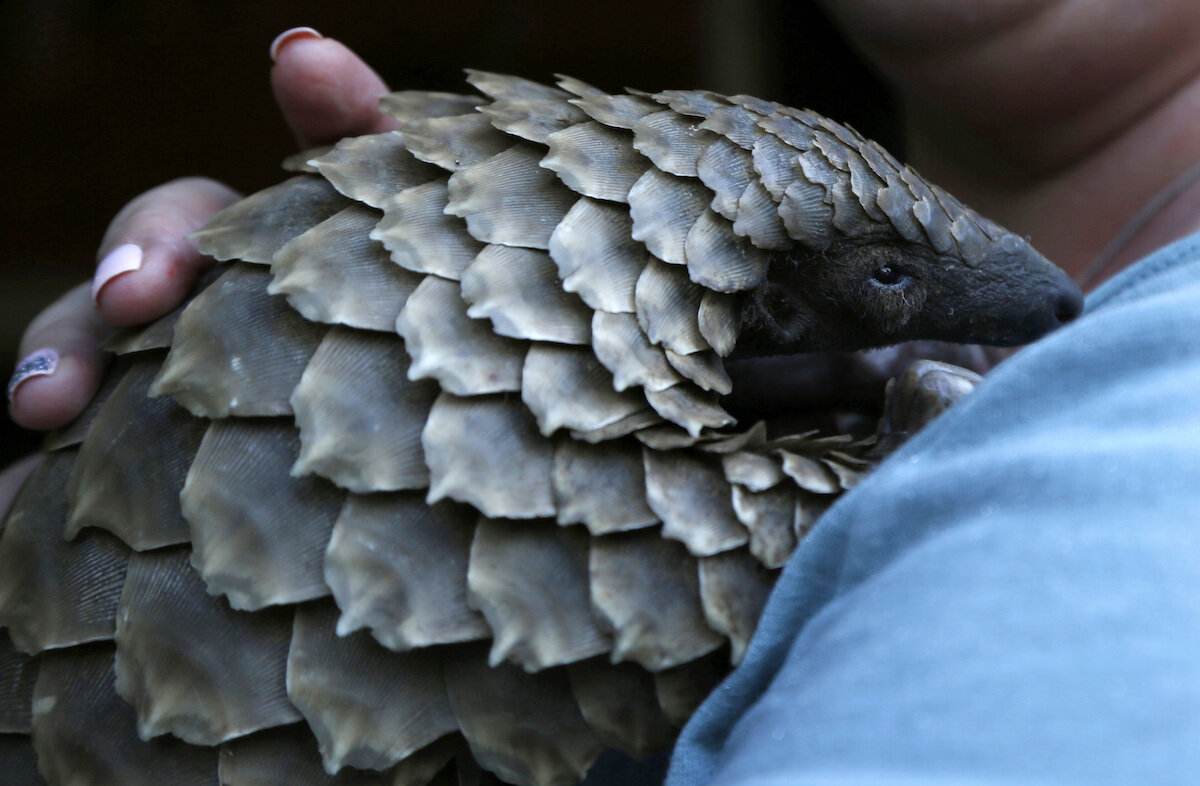 Pangolins are insect-eating, scaly mammals 鈥 playfully described by the International Union for Conservation of Nature as "resembling an artichoke with legs and a tail." Their scales 鈥 made of keratin, the same material in human finger nails 鈥 are in high demand for Chinese traditional medicine, to purportedly cure arthritis, promote breast-feeding for mothers, and boost male virility, although there is no scientific backing for these beliefs.