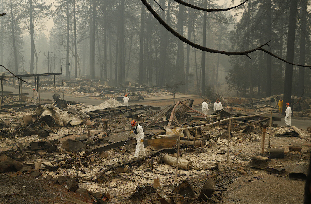 One recent morning, teams from the U.S. Environmental Protection Agency in white hazmat suits combed through Paradise, loading seared paint cans, partially melted pesticide containers, and the remains of propane tanks onto trucks to be hauled away.