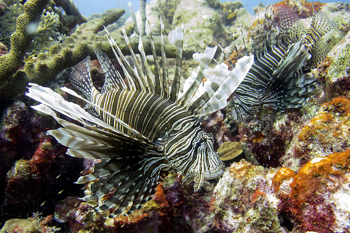 With its striking stripes, diaphanous fins, and mane of colorful but poisonous spines, the exotic Indo-Pacific lionfish makes for a popular aquarium fish. But when released into the Atlantic in the 1980s (presumably by aquarium aficionados who tired of the voracious pet), the fish thrived and became a menace to native fish species and the reefs they rely upon. Lionfish populations first exploded off Florida鈥檚 coast; now, lionfish have expanded their range throughout the Bahamas and the Caribbean all the way down to South America.聽