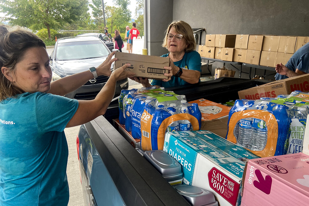 At the food pantry, Elizabeth Willson Moss was preparing volunteers in the driveway beside stacks of boxes of canned food and bags of apples and celery. Her organization, Interfaith Assistance Ministry, regularly feeds families and had stocks on hand at its warehouse for this first day of Helene handouts. More will be needed to keep the operation going, and she鈥檚 waiting on requests to state and federal agencies that are bringing in supplies.听