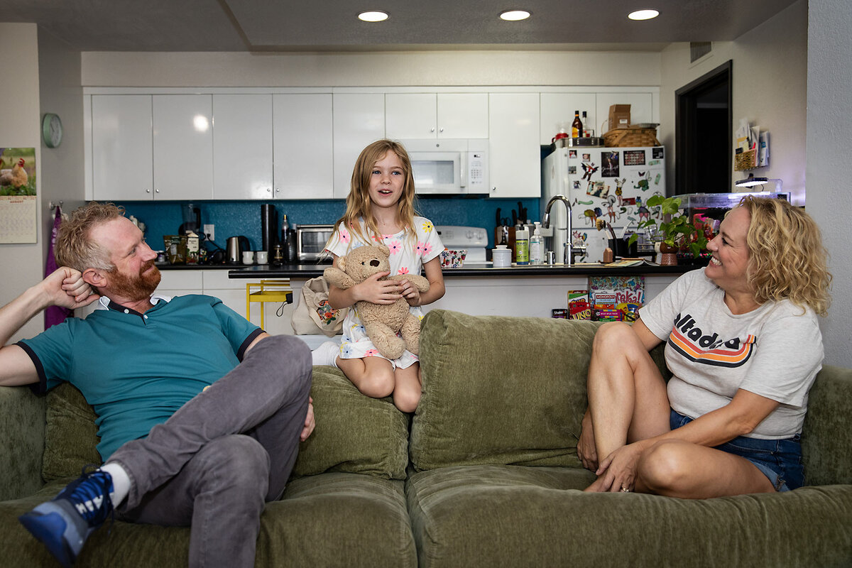 Her parents, Bridgette Campbell and Christopher Wallinger, moved with her to this Pasadena apartment after they realized their Spanish-style house, nestled on the corner of Olive Avenue and Harriet Street, was among the more than 9,400 structures destroyed in January’s Eaton blaze. They planned to stay here as they rebuilt in their beloved neighborhood.