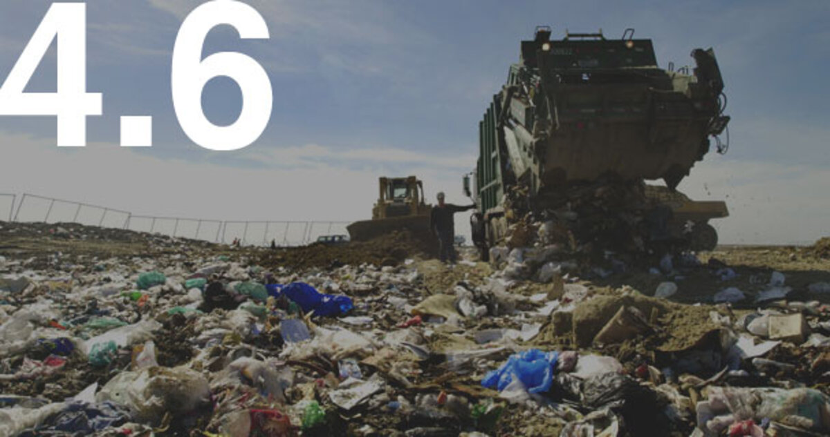 That amounts to a total of 251 million tons each year. Of this, 82 million tons are recycled (that's 33 percent, or 1.5 pounds per American). Of the remaining 169 tons, 138 are buried in landfills and 31 tons are incinerated.