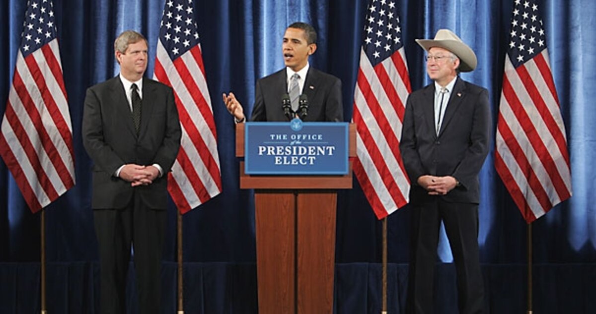 鈥淚t鈥檚 time for a new kind of leadership in Washington that鈥檚 committed to to benefit all our families,鈥 said the president-elect. 鈥淭hat is the kind of leadership embodied by Ken Salazar and Tom Vilsack.鈥