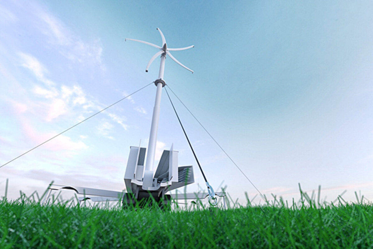 A computer-animated video on the company's web site depicts the wheeled wind machine in transport. Arriving at its destination, the shiny, white turbine unfolds and rises effortlessly into the air, over the soundtrack of swelling strings. As the fans spin, night falls, and lights flicker on in nearby homes.