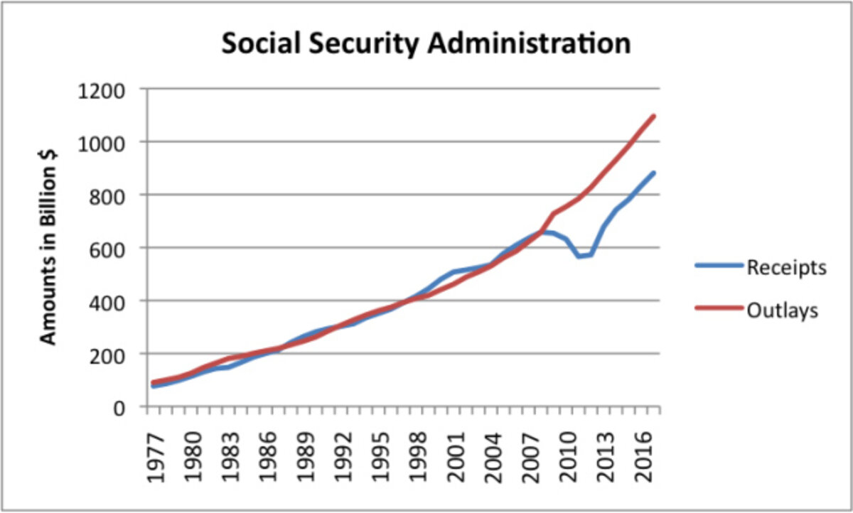 Based on Figure 1, we either need to raise taxes by a little more than 15% of wages, and keep raising taxes in the future to keep up with an escalating problem, or we need to cut back on government benefits, such as unemployment insurance, Social Security and Medicare.