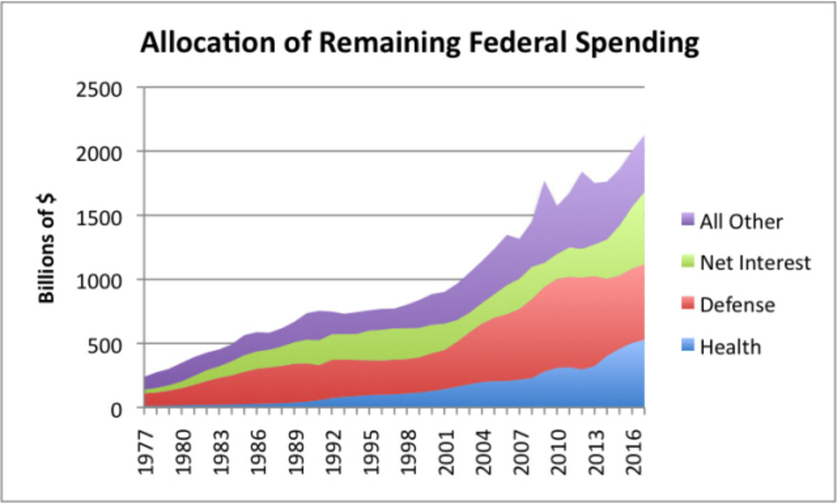 We can break down the remaining federal spending (as shown in Figure 6) into some major groupings.