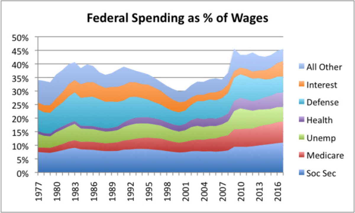 If we look at individual programs 鈥渟tacked up鈥 as a percentage of wages, this is what we see:
