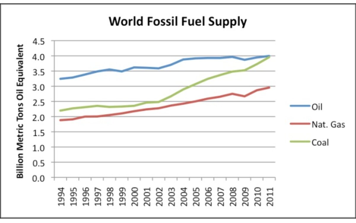 A primary reason why coal consumption is rising is because of increased international trade, starting when the World Trade Organization was formed in 1995, and greatly ramping up when China was added in December 2001. Figure 1 shows world fossil fuel extraction for the three fossil fuels. A person can see a sharp 鈥渂end鈥 in the coal line, immediately after China was added to the World Trade Organization (see Figure 1, above). China鈥檚 data also聽聽at that time.