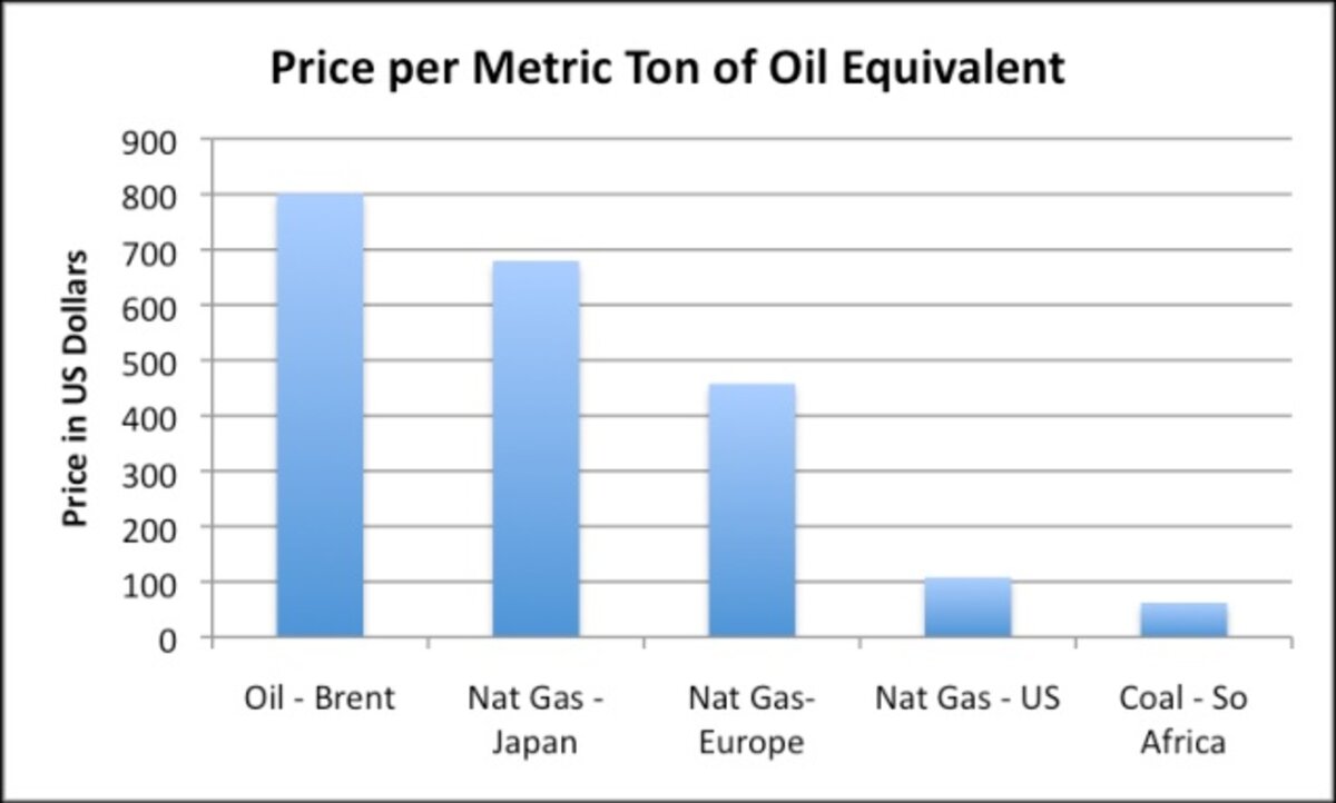 In recent years, oil has been the most expensive of fossil fuels. Thus, a country that uses mostly oil will, on average, have higher energy costs than a country that can dilute out its oil use with the use of cheaper fuels.