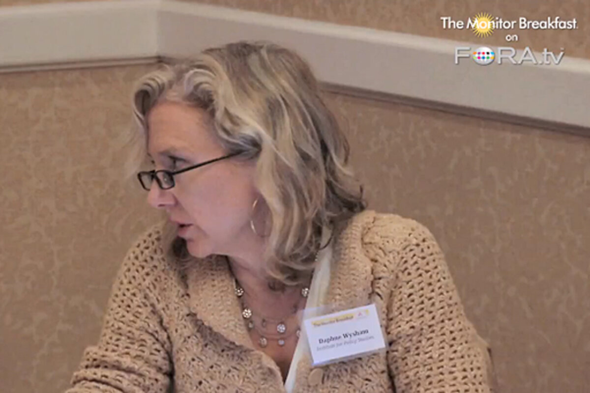 As part of an ongoing series of conversations about building America's energy future, the Monitor hosted a roundtable discussion in Washington on Dec. 12, 2012, with several clean-energy experts. The video below is an excerpt from panelist Daphne Wysham, a聽fellow at the Institute for Policy Studies and founder and co-director of the Sustainable Energy and Economy Network. Ms. Wysham speaks about her vision for a bipartisan clean-energy policy in America.聽The discussion was sponsored by聽, a Paris-based energy company that works primarily in nuclear power production.聽