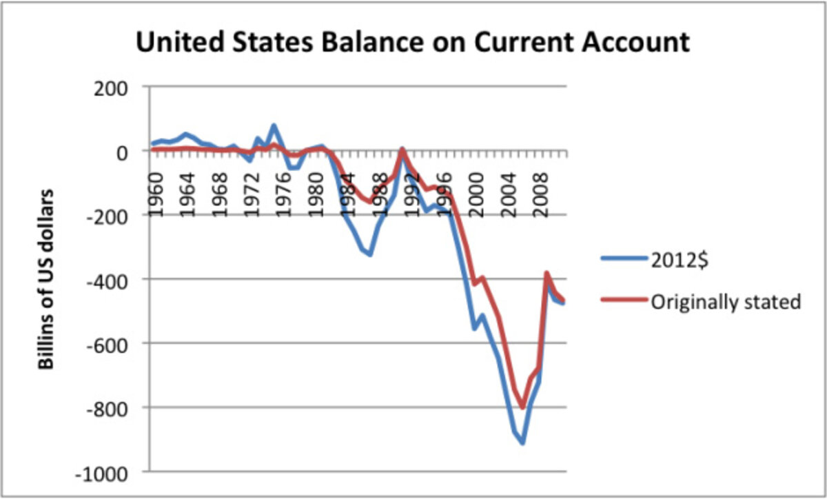 With increased globalization and the rising price of oil since 2002, the US trade deficit has soared (Figure 10). Adding together amounts from Figure 10, the cumulative US deficit for the period 1980 through 2011 is $8.6 trillion. By the end of 2012, the cumulative deficit since 1980 is probably a little over 9 trillion.