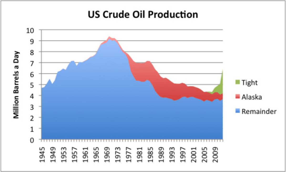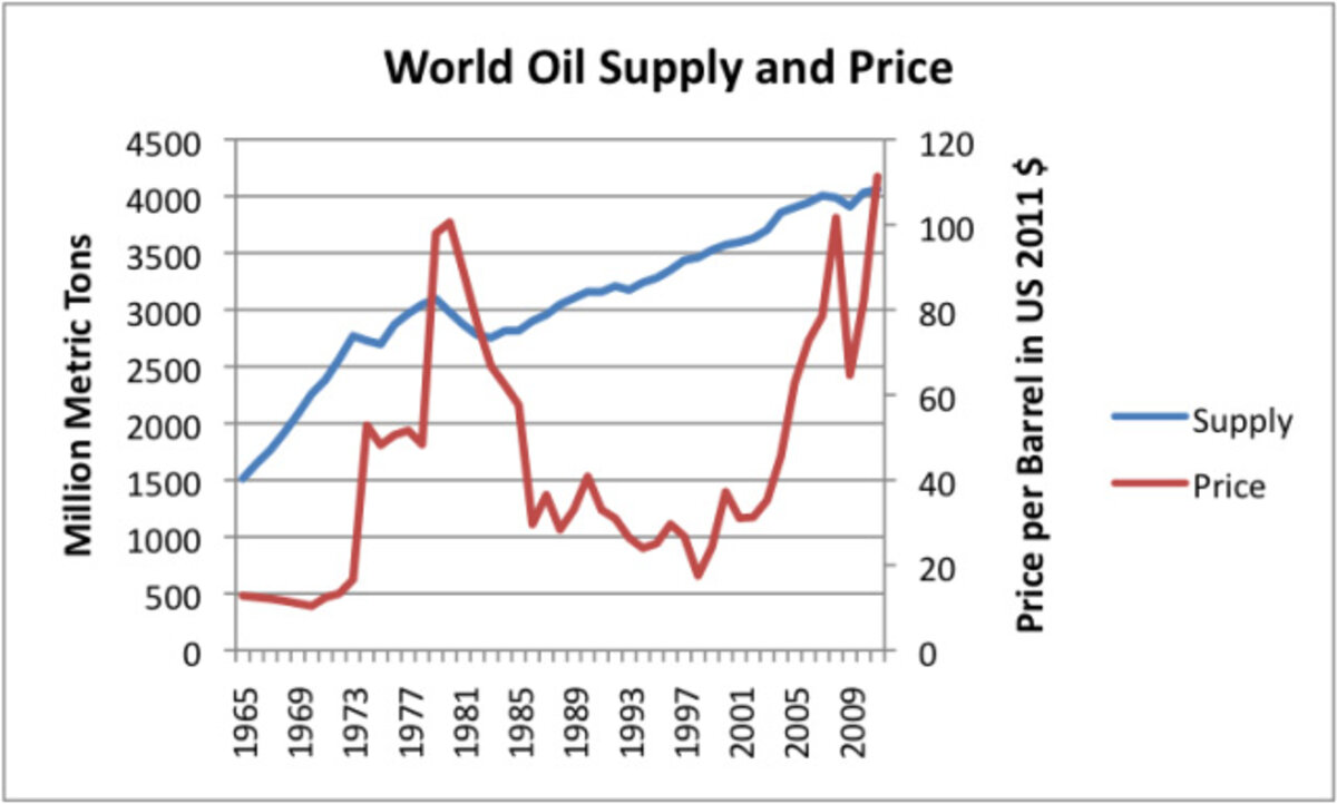 After 1983, it was possible to bring oil prices back to the $30 to $40 barrel range (in 2012$), compared to the $20 barrel price (in 2012$)听available prior to 1970. This was partly done partly by ramping up oil production in the North Sea, Alaska and Mexico (sources which were already known), and partly by reducing consumption. The reduction in consumption was accomplished by cutting back oil use for electricity, and by encouraging the use of more fuel-efficient cars.