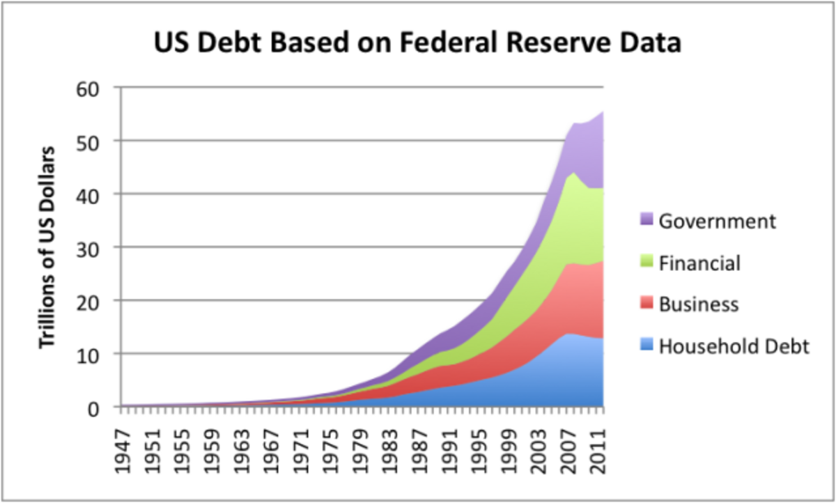 If an economy is growing, it is easy to add debt. The additional growth in future years provides money both to pay back the debt and to cover the additional interest. Promotions are common and layoffs are few, so a debt such as a mortgage can easily be repaid.