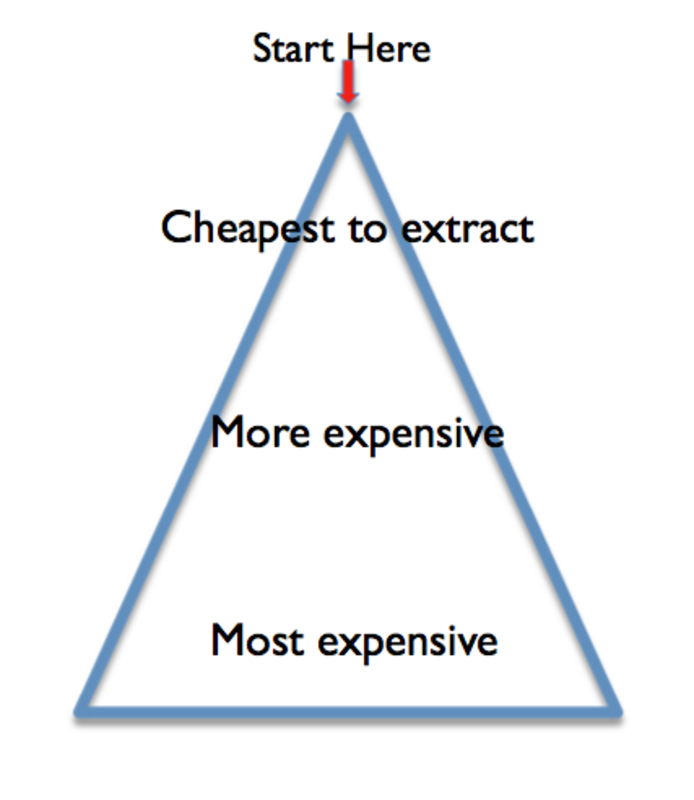 When a company decides to extract a resource such as oil, gold, or fresh water, it looks for the least expensive source available. After many years of extraction, the least expensive sources become depleted, and the company must move on to more expensive resources. It always looks like there are plenty of resources left; they are just increasingly expensive to extract.聽Eventually an extraction limit is reached; this limit is a聽pricelimit.