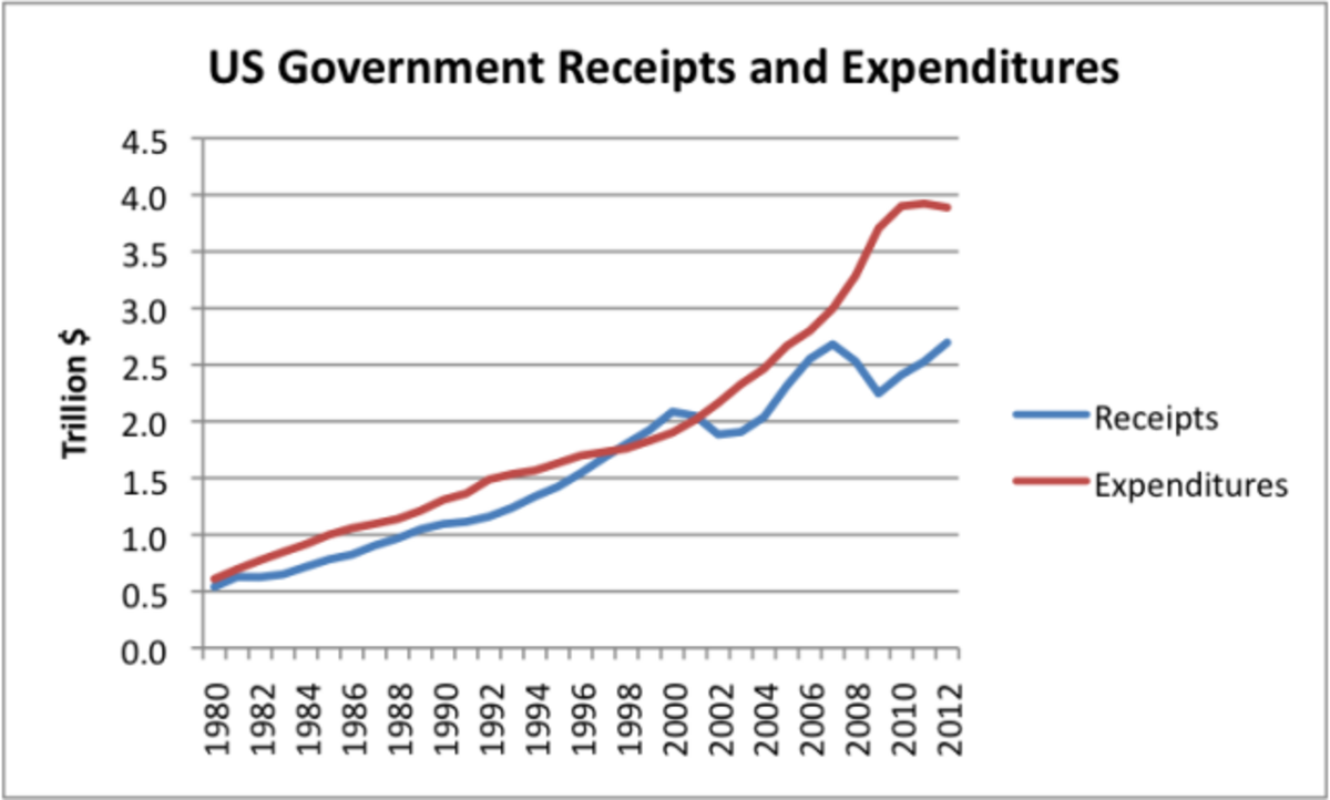 Clearly one of the issues is the聽wide gap between US Federal Government revenue and government expenditures.