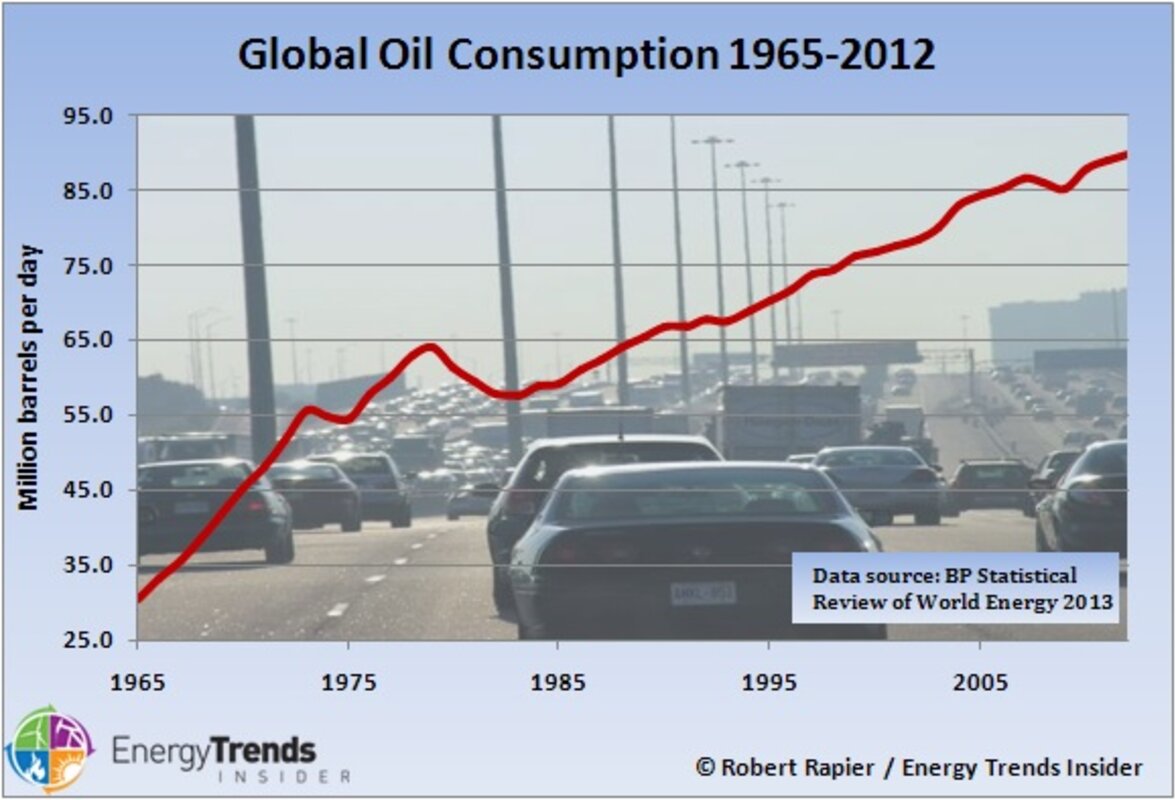 I have seen the first point above misreported as 鈥淕lobal Fossil Fuel Energy Consumption Slows.鈥 I have seen others write about the reduced demand for oil. That鈥檚 about as accurate as 鈥淚nnocent until proven guilty.鈥 For instance, in 2011 global oil consumption was 88.9 million barrels per day (bpd). If global oil consumption slowed in 2012 鈥 as I have read 鈥 what would consumption need to be relative to 2011? Less than 88.9 million bpd. But according to the BP report, in 2012 oil consumption was 900,000 bpd higher than in 2011 鈥 a new all-time record.