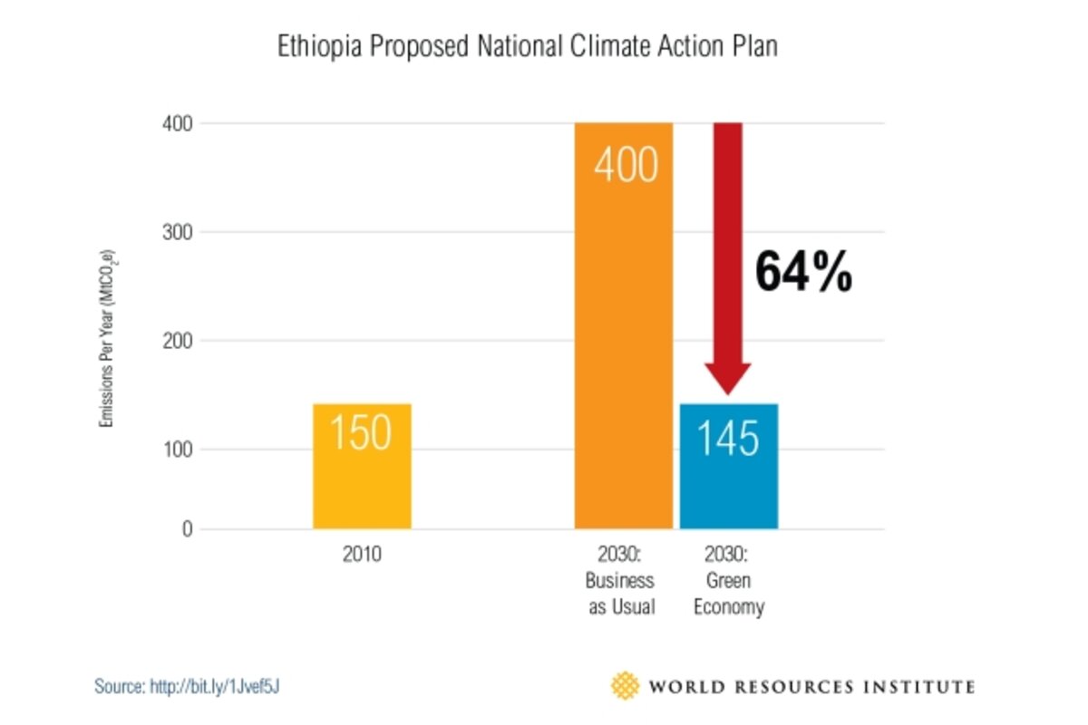 "As one of Africa鈥檚 most vulnerable nations, and the first least developed country to submit its Intended Nationally Determined Contribution (INDC) to the UNFCCC, Ethiopia communicated its plans to cut emissions below 2010 levels from 150 megatonnes of carbon dioxide equivalent (Mt CO2e) in 2010 to 145 MtCO2e in 2030."