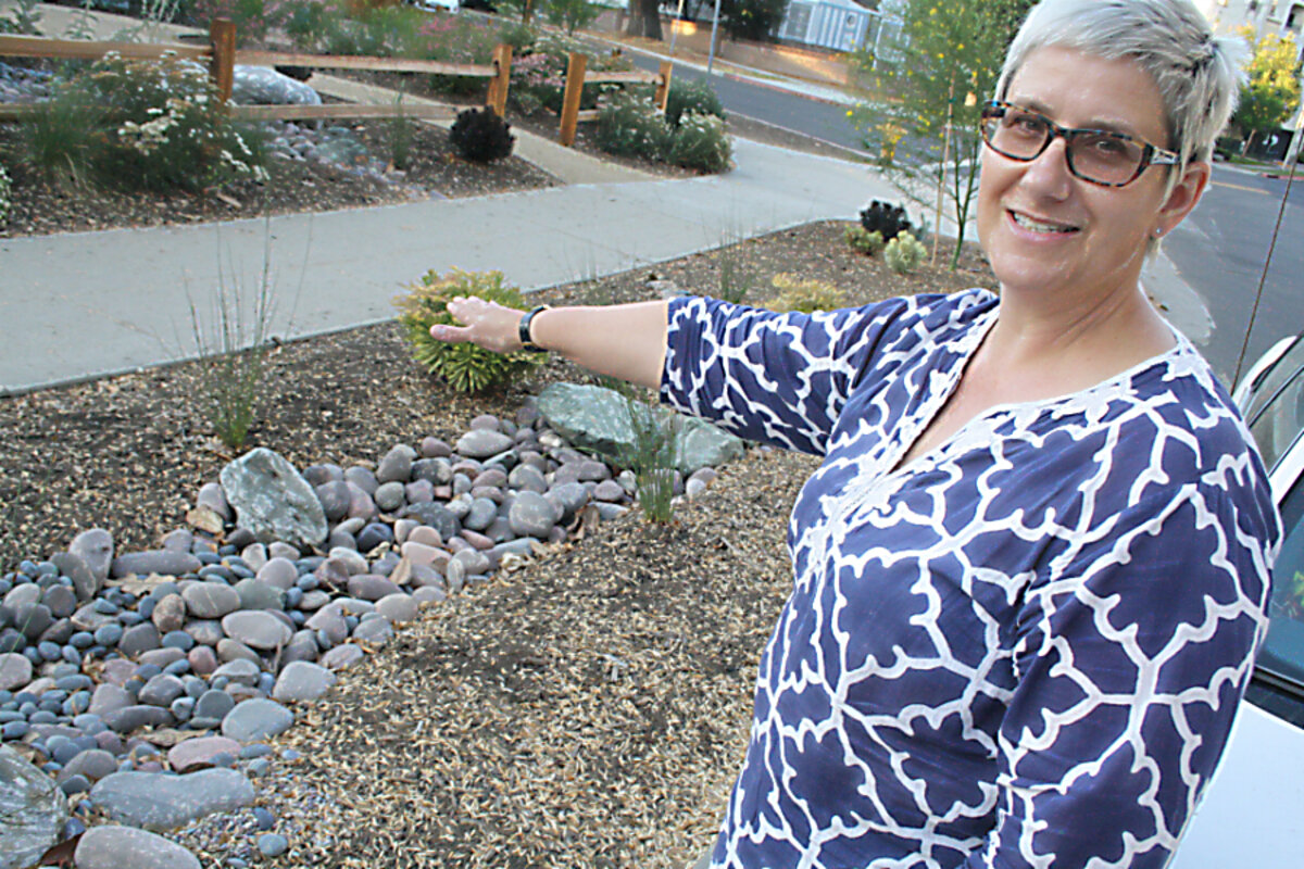Now the former eyesore is curved and contoured around two water-absorbing dips called "bioswales," and covered in green and silvery plants and trees that sprout from a thick layer of mulch. Ms. Butler doesn鈥檛 anticipate the drought-tolerant yard transforming again any time soon.