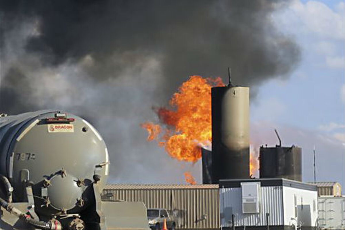 The most recent, a July 7 strike at a facility next to a popular highway truck stop near the town of Alexander that burned for days, spilled about 118,146 gallons of brine and spilled or burned off roughly 27,258 gallons of oil. Fred Kershisnik, the president of the site's owner, 1804 Operating, told The Associated Press that the site was grounded and the company thought it had taken all the steps to minimize the risks lightning posed, but will be reviewing how it protects sites.