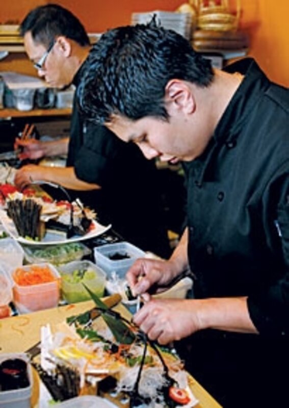 Instead, chefs and co-owners Kin Lui and Raymond Ho tweak traditional sushi items by substituting fish such as Arctic char that鈥檚 been raised in closed systems with little risk of pollution and effect on habitat in place of salmon that鈥檚 been farm- raised in an open-cage system. They buy kampachi that鈥檚 farmed in the ocean off Hawaii rather than hamachi from farms that may use untraceable feed and raise the fish on land or in freshwater ponds. The shrimp are either trap-caught spot prawns from British Columbia or US wild shrimp.