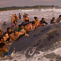Valiant effort to save blue whale stranded on Nicaragua beach