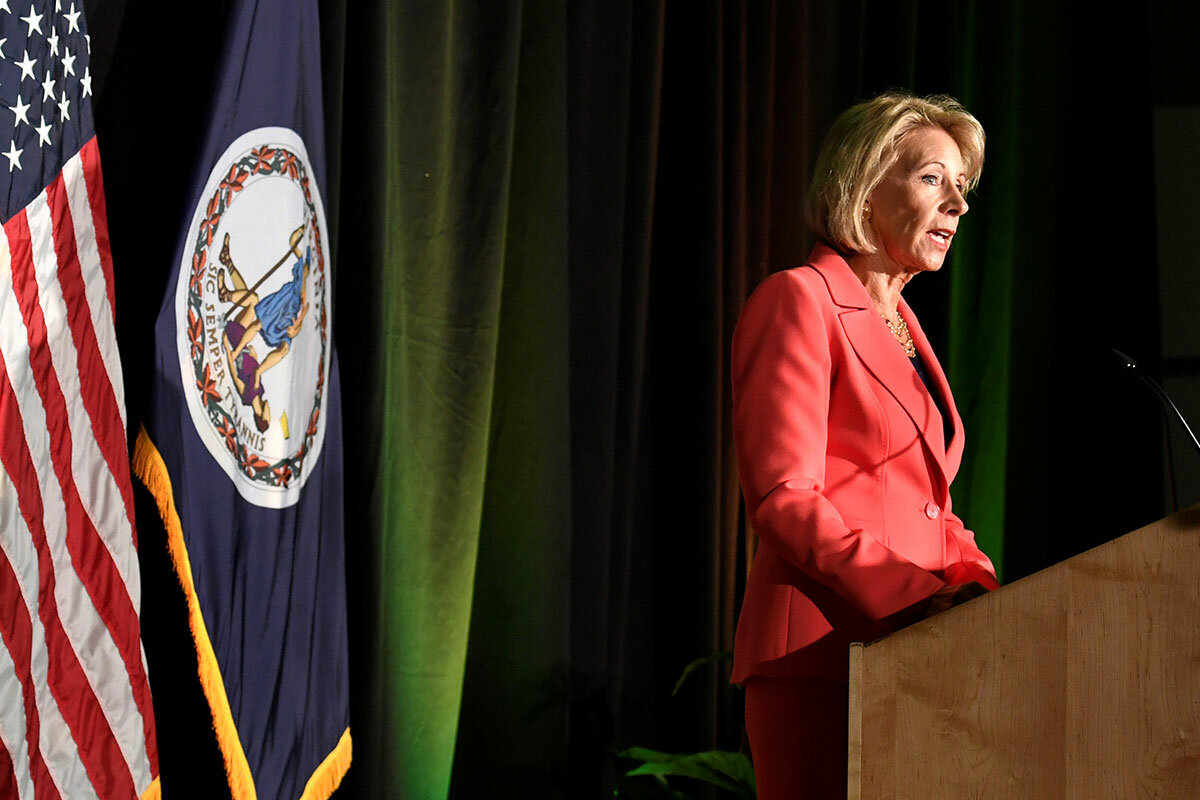 DeVos also addressed this in her speech: "Through intimidation and coercion, the failed system has clearly pushed schools to overreach.鈥