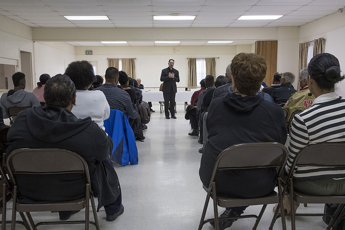Those ancestors 鈥渂elieved in God despite everything ungodly around them. I鈥檓 still humbled by that kind of faith,鈥 says descendant Lee Baker, before the meeting that he helped organize gets under way. He needed resilience 鈥 which he now sees runs in the family 鈥 when he helped integrate Catholic institutions in the 1960s. Now he teaches at a Catholic high school near New Orleans.
