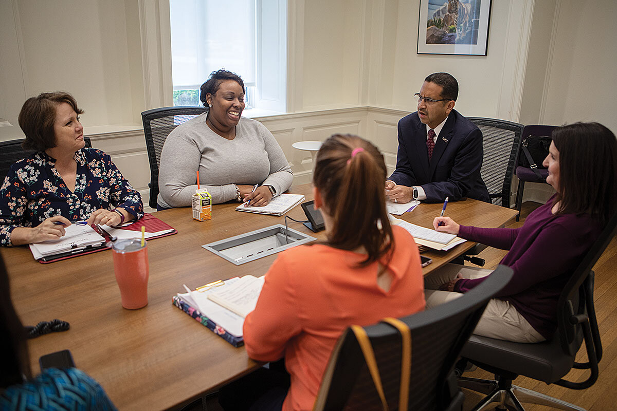 Early in his tenure, the president worked on a summit addressing black male achievement, joined the 100 Black Men civic organization, and began serving as the faculty liaison to the university鈥檚 branch of the NAACP. After only four black students rushed a fraternity or sorority in the fall of 2013, Dr. Alexander urged Greek leaders to 鈥渂e forward thinking.鈥澨