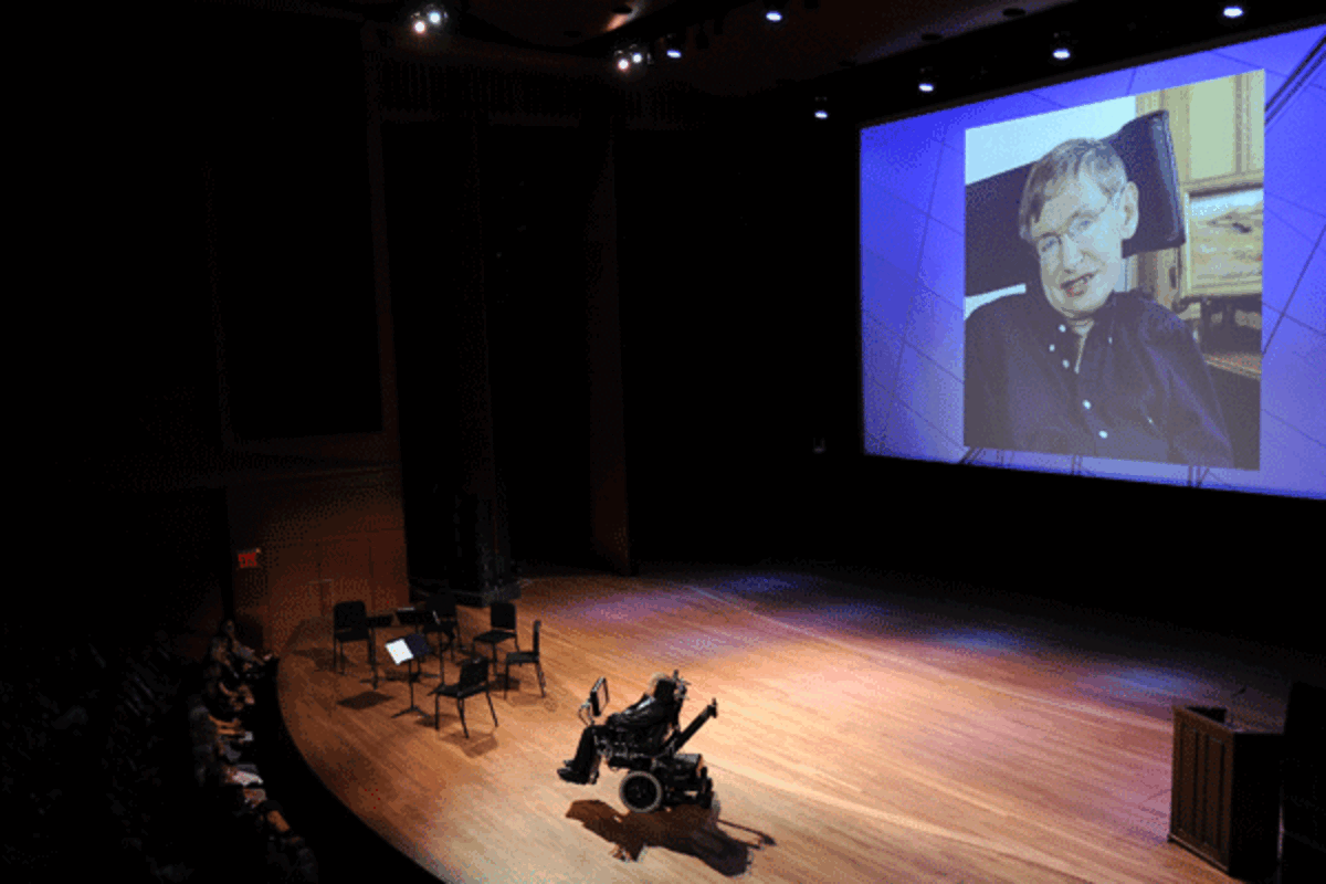 In introducing Hawking, friend and fellow physicist James B. Hartle told the audience that the public's image of the nearly paralyzed Hawking as a lone figure trapped by physical limitations is false. Instead, he said,Hawking, who is best known for his work explaining the physics of black holes, has been surrounded by former students and built collaborative relationships with colleagues.
