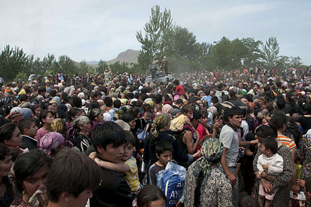 Thousands of terrified ethnic Uzbeks were rushing toward the nearby border with Uzbekistan. An Associated Press reporter at the border saw the bodies of children killed in the panicky stampede.