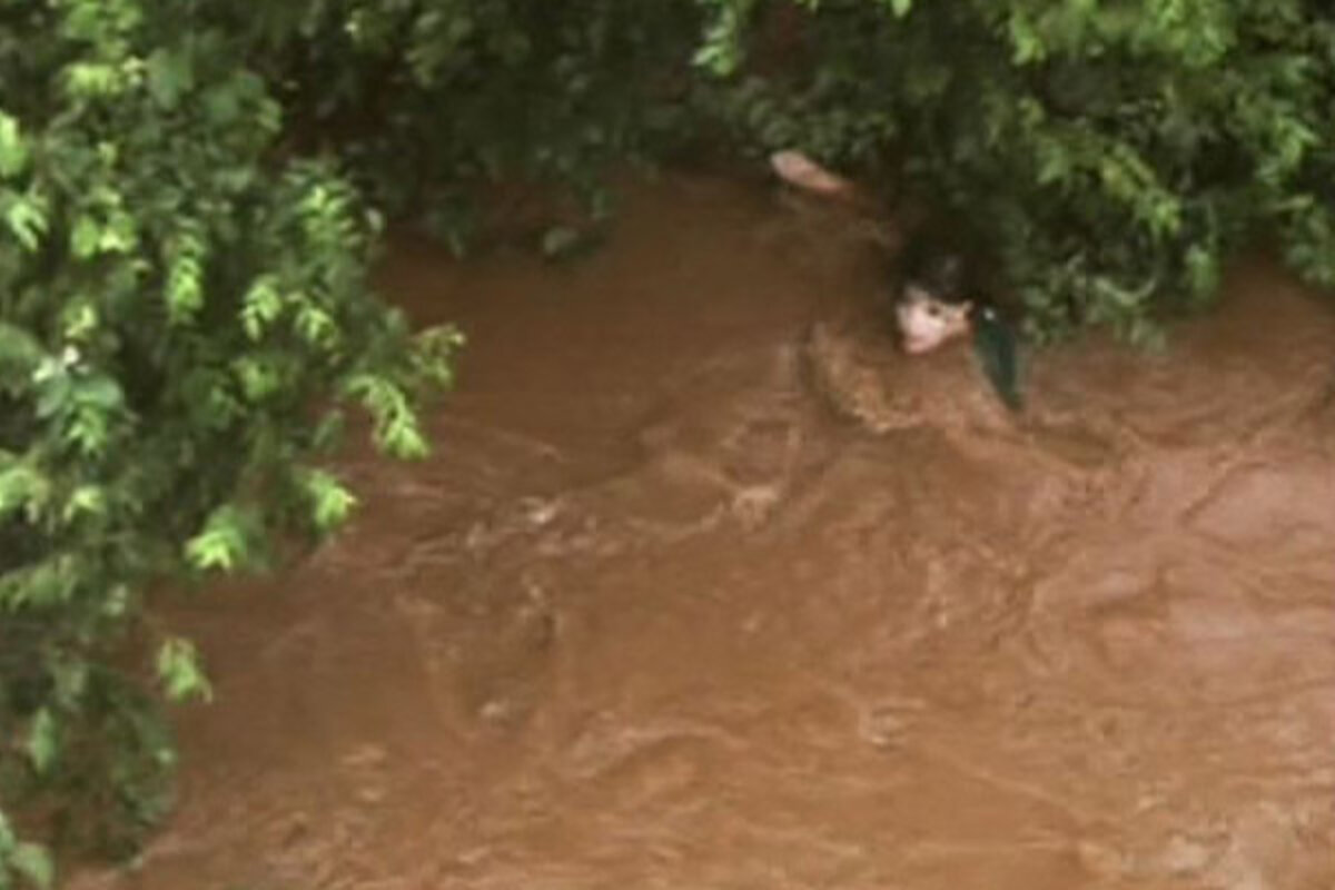 "There are cars where you can see just the rooftops, they're totally submerged in water," Hardin said. Footage from KOCO-TV showed a person bailing water out of the passenger-side window of a half-submerged car before being rescued by crews on a boat.