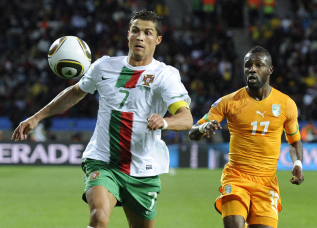After two early fouls against him and a 30-meter (yard) strike that bounded off the post, Ronaldo was involved in an altercation with Ivory Coast defender Guy-Roland Demel on the edge of the penalty area in the 21st minute.