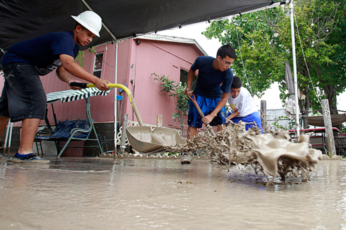 Dozens of houses in low-lying neighborhoods of Nuevo Laredo were flooded late Thursday, with water rising as high as four feet (1.2 meters) in some places. Firefighters using ropes, small boats and muscle power managed to lasso about a half-dozen truck cargo containers floating in the Rio Grande, to prevent them from smashing into or damaging bridges.