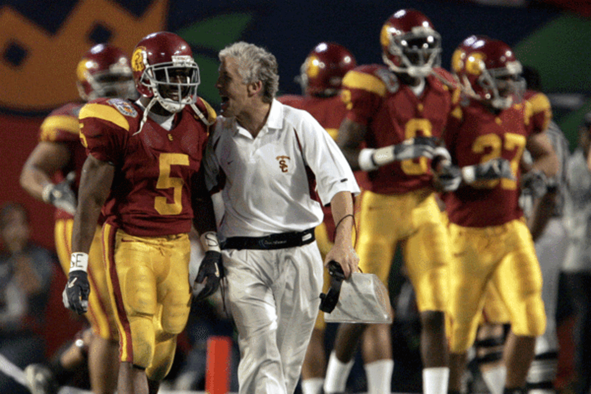 USC, whose teams are nicknamed the Trojans, were banned from participating in NCAA football's lucrative post-season for two years, and were stripped of their 2004 national championship among 12 wins from the 2004 and 2005 seasons.
